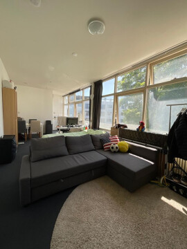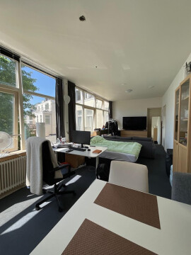 Deze ruime kamer beschikt over een eigen keukenblok, heel veel ramen en heeft een oppervlak van ongeveer 27 m2. De badkamer en het toilet worden gedeeld met 1 andere bewoner. Er zijn wasmachines en drogers aanwezig in het pand.